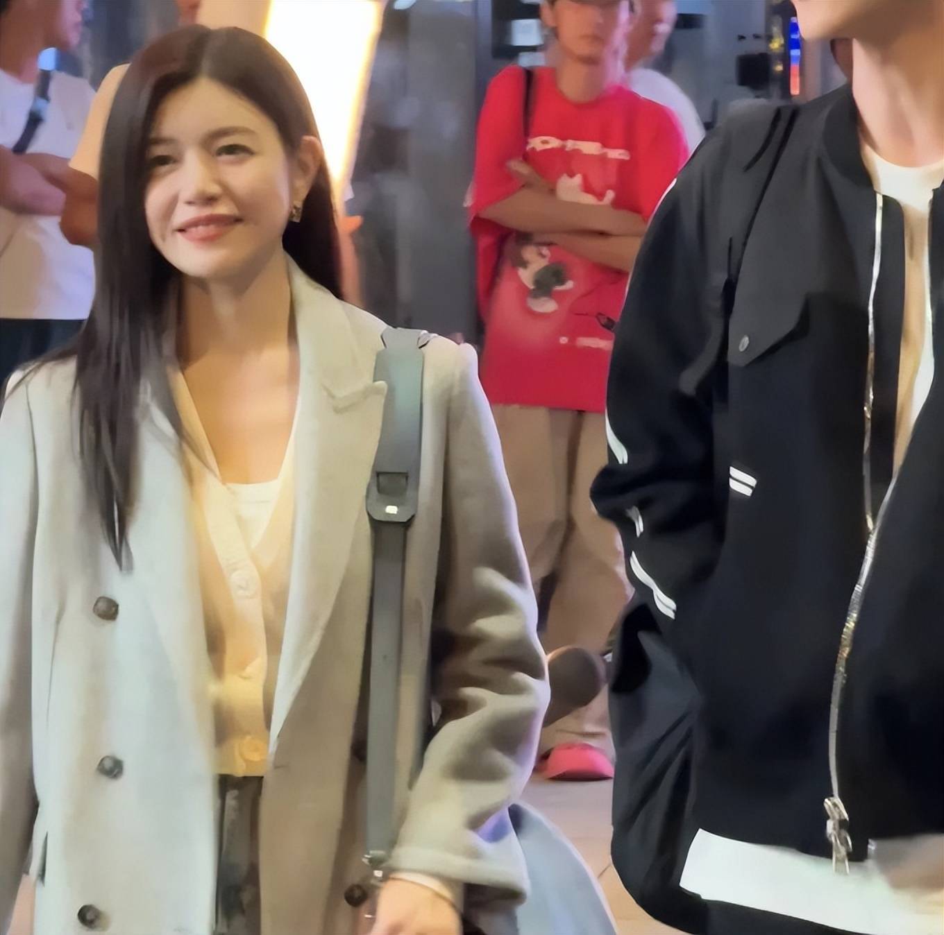 可是在粉丝的手机视频里,有她蹲着给小朋友整理裙摆的瞬间。